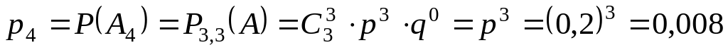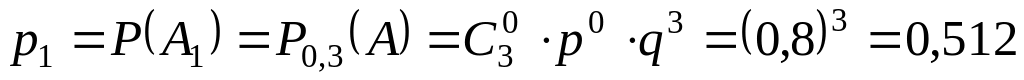 Пример 31. Вероятность того, что телевизор не потребует ремонта в течение гарантийного срока, равна 0,8. Составить закон распределения числа телевизоров, потребующих гарантийного ремонта, из трех проданных телевизоров.
