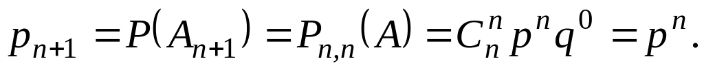Событие А2 - один раз наступит событие А в n независимых испытаниях с вероятностью р при каждом испытании.