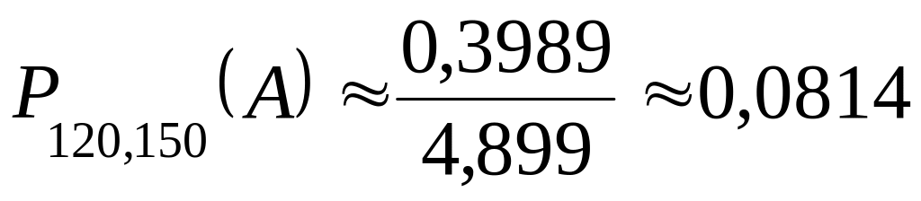 Пример 32. Вероятность того, что на сборку попадает прибор, удовлетворяющий стандарту, равна 0,8. Найти наивероятнейшее число стандартных приборов из 150 поступивших и вероятность поступления такого числа приборов.