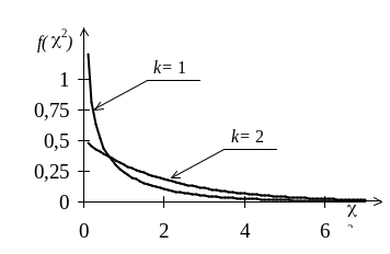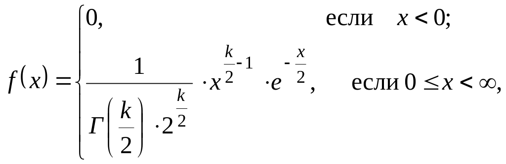 Функция плотности вероятности распределения с k степенями свободы имеет вид