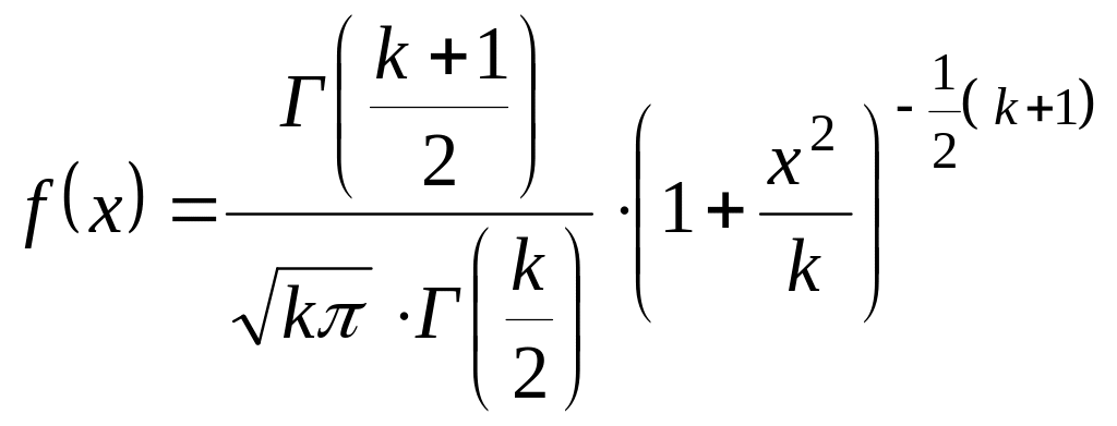 Функция плотности вероятности t-распределения имеет вид