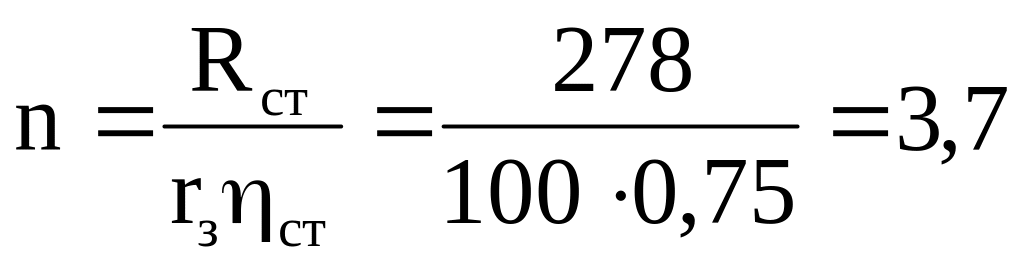 Количество заземлителей n при коэффициенте = 0,75 (взятым из табл. 3.2)