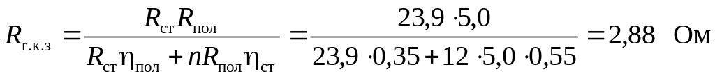 Сопротивление контурного группового заземления подстанции с учетом естественного заземления составит