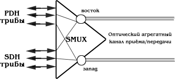 Рис.2.1.1.Синхронный мультиплексор (SMUX): терминальный мультиплексор ТМ или мультиплексор ввода/вывода ADM.