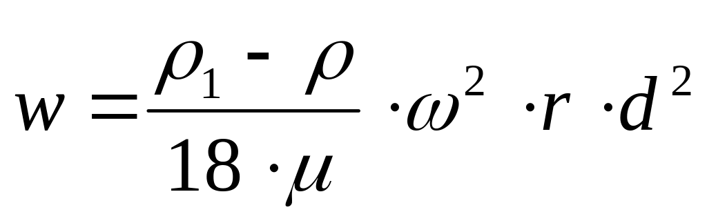 В полі дії відцентрових сил швидкість осадження також залежатиме від густини ρ1 і розмірів частинки d, густини рідини ρ та її в’язкості µ. Однак замість сили тяжіння на частинку діє відцентрова сила, тому в останню залежність замість прискорення сили тяжіння g слід ввести прискорення відцентрової сили ω2·r