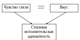 Сказанное дает основание провести знак равенства между двумя феноменами – вкусом исполнителя и его «чувством стиля». Последний находит свое выражение в качестве «стилевой исполнительской адекватности», являющейся одной из важнейших задач стилевого педагогического подхода (А.И. Николаева). В свою очередь достижение стилевой адекватности исполнения можно считать фактором воспитания у исполнителя его художественного вкуса. Схематически этот процесс может быть выражен следующим образом.