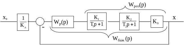 Передаточна функція замкненого контуру (рис. 1.6) знаходиться як