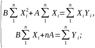 Например, для линейного уравнения регрессии система уравнений имеет вид: