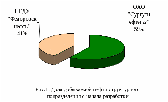 НГДУ «Федоровскнефть» является, одним из шести предприятий основного производства в системе ОАО «Сургутнефтегаз». Общий вклад предприятия в первый миллиард тонн сургутской нефти составил почти половину. На данный момент ежегодная добыча нефти НГДУ «Федоровскнефть» в общем, объема продукции общества составляет 20,7% . таблица 7.,страница 47.