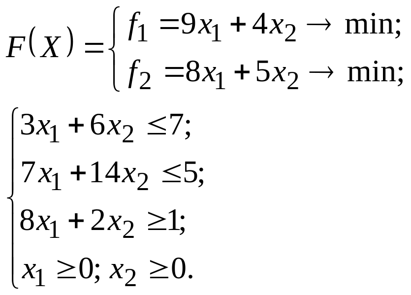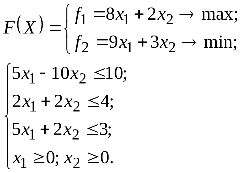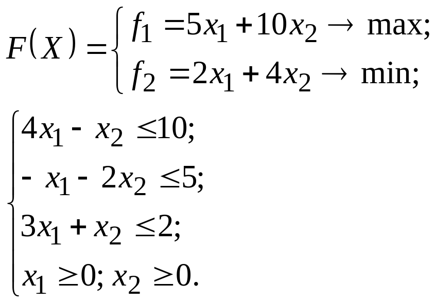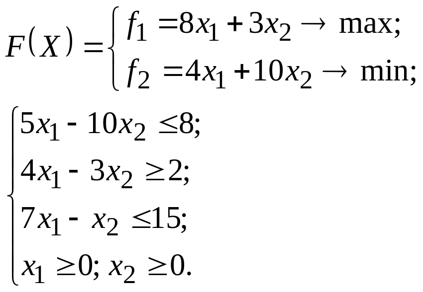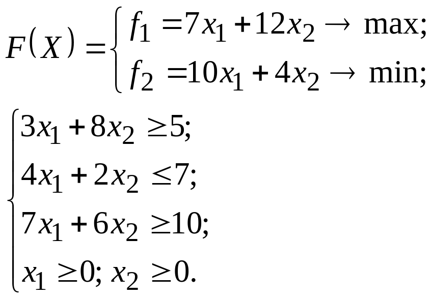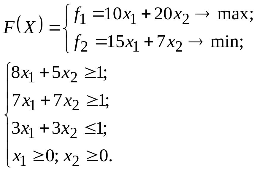 1) найти компромиссное решение задачи методом последовательных уступок, считая, что отклонение второго критерия от его значения 20 %;