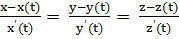 Тоді в кожній своїй т. Р ця крива має дотичну, направляючий вектор якої колінеарний вектору (t), де t - значення параметру, що відповідає т. Р.
