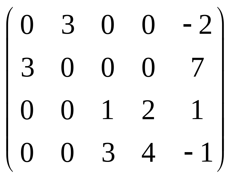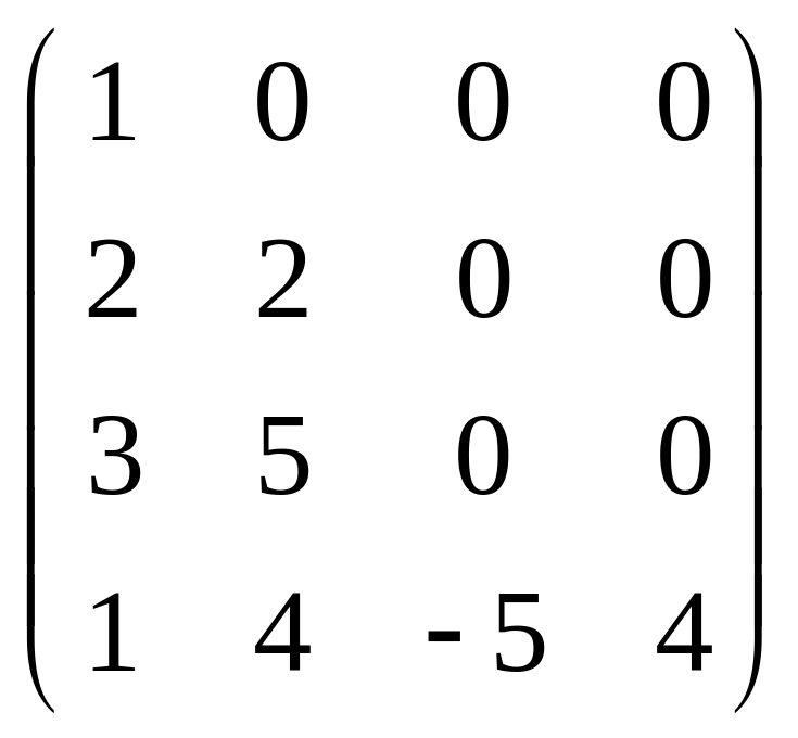 Серед поданих матриць вибрати матрицю, ранг якої дорівнює числу 4. |