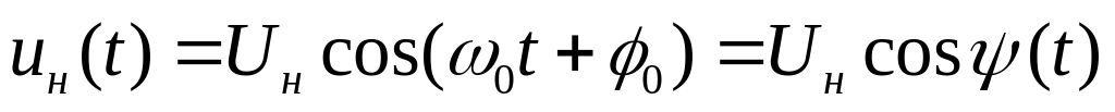 где Uн – амплитуда в отсутствие модуляции; ω0 – угловая (круговая) частота; φ0 – начальная фаза; ψ(t) = ω0t + φ0 – полная (текущая или мгновенная) фаза; kA – безразмерный коэффициент пропорциональности; e(t) – модулирующий сигнал.