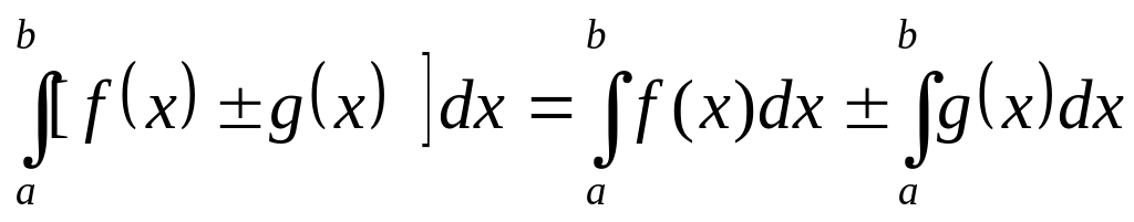 Определенный интеграл от алгебраической суммы конечного числа функций равен алгебраической сумме определенных интегралов от слагаемых функций: