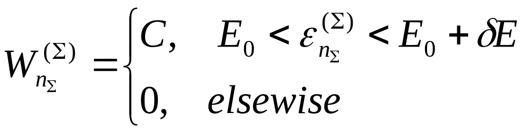 Обращаю внимание на то, что несмотря на относительную малость ширины интервала в него в силу квазинепрерывности спектра и его вырождения будет попадать большое число состояний, что, собственно, и дает возможность статистического рассмотрения.