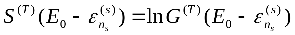 Перейдем теперь к вычислению энтропии нашей системы. Для этого воспользуемся тем обстоятельством, что с подавляющей вероятностью реализуются микросостояния нашей системе с энергиями, лежащими в малой окрестности внутренней энергии . Ширина этой окрестности определяется относительной флуктуацией, которая, как мы знаем очень мала. Величины, фигурирующие в термодинамике, не зависят от этих флуктуаций. Поэтому с точки зрения термодинамики наша система полностью эквивалентна замкнутой системе с энергией . Тогда в соответствии с (7) энтропию нашей системы мы можем определить как