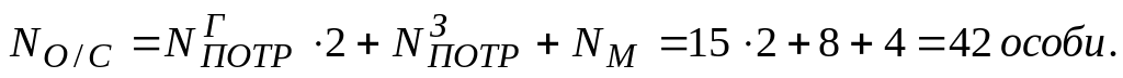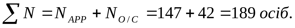 Визначаємо за формулою (12) загальну кількість особового складу для рятування потерпілих та гасіння пожеж: