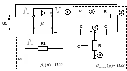 Рисунок 3.4 - Принципова електрична схема генератора RC-генератора з подвійним Т-подібним мостом