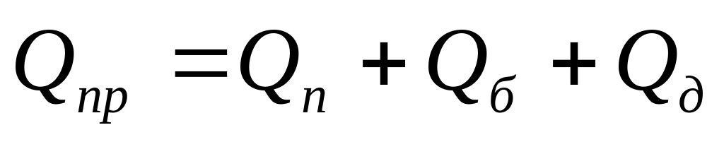 где Qn ,Qб, Qд - соответственно расходы производственных, бытовых и душевых сточных вод.