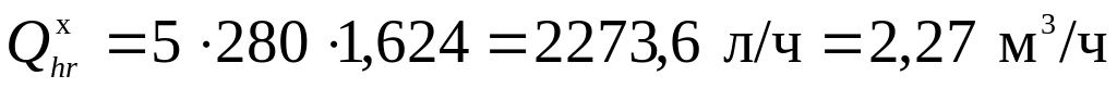 Тогда = 1,624, общий часовой расход на холодное водоснабжение составит