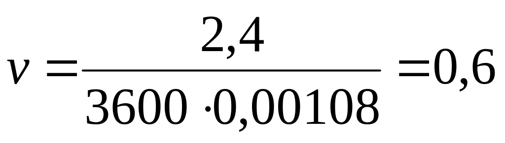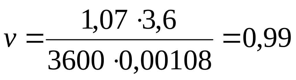 При максимальном секундном расходе qh = 1,07 л/с скорость равна