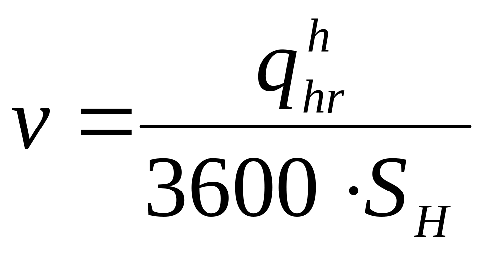 Определяем фактическую скорость движения воды при часовом расходе по формуле