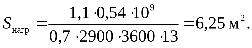 n = Sнагр / SН = 6,25 / 1,31 = 4,8 ≈ 5 секций.