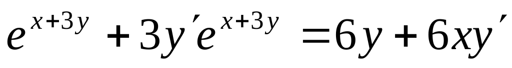 Застосуємо правило диференціювання складеної функції (для лівої частини рівності), а також правило диференціювання добутку (для правої частини рівності):