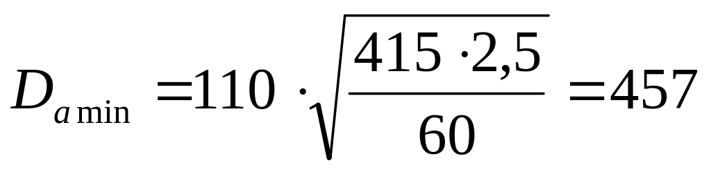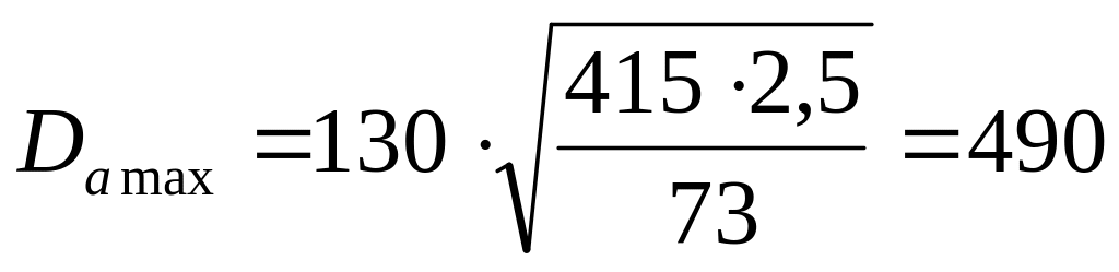 Для предварительного определения возможных границ диаметра якоря используют формулу:
