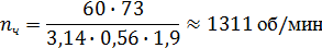 Устанавливаем частоту вращения якоря при часовом режиме работы двигателя: