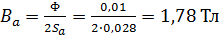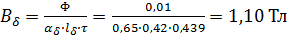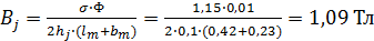 Так как магнитный поток в якоре раздваивается, то индукция в ярме якоря: