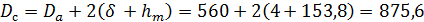 Диаметр внутренней поверхности круглого остова, согласно [1, с. 136] равен: