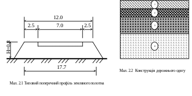 Характеристики основних технічних та конструктивних параметрів дороги, яка будується, наведені в таблицях 2.1., 2.2. та на рисунках 2.1., та 2.2.