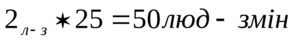 Тривалість відновлення траси дороги при даному складі підрозділу 50 /4 = 13 змін.