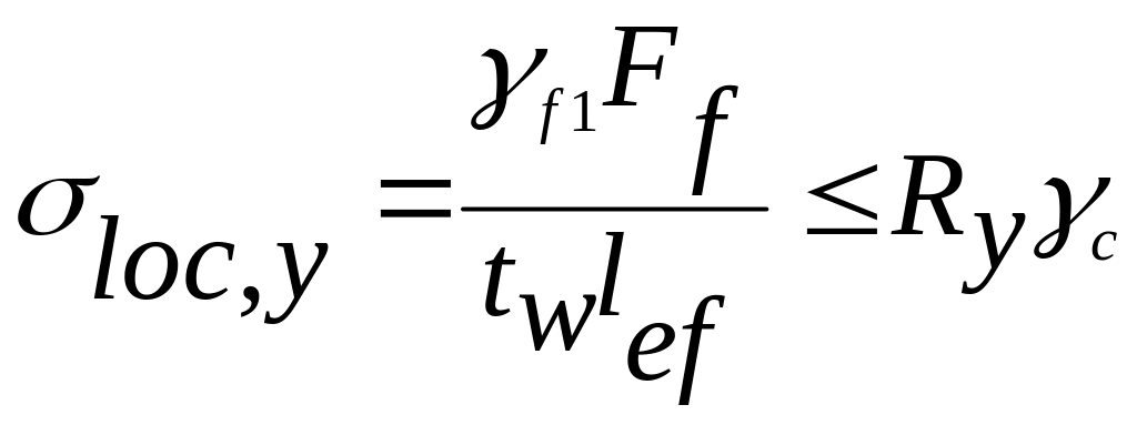 Проверяем прочность стенки балки от местного давления колеса крана: