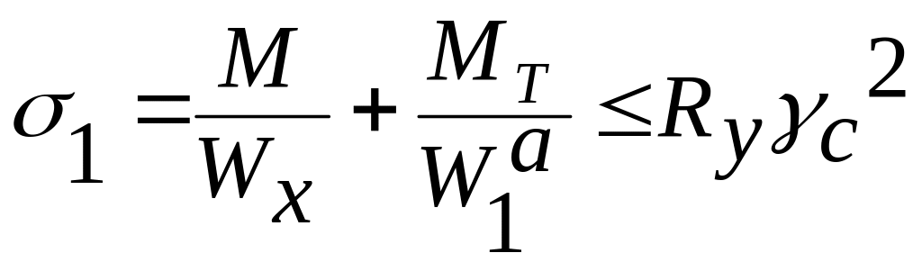Нормальные напряжения в верхнем поясе от совместного действия наибольшего изгибающего вертикального и горизонтального моментов: