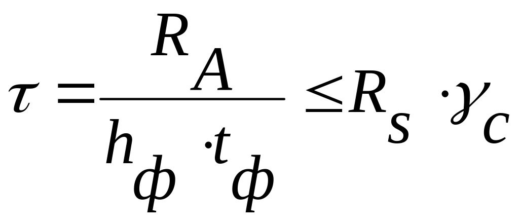 Сварные швы Ш5, крепящие фасонку к опорному ребру (торцевой фасонке), проверяем на срез от опорной реакции: