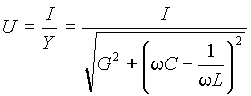 Падение напряжения на входе контура U при питании его от источника, обладающего свойствами источника тока и формирующего ток с действующим значением I, будет равно