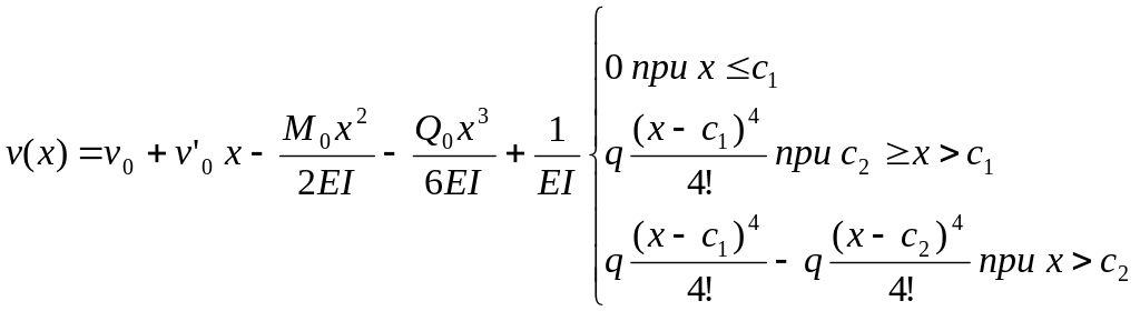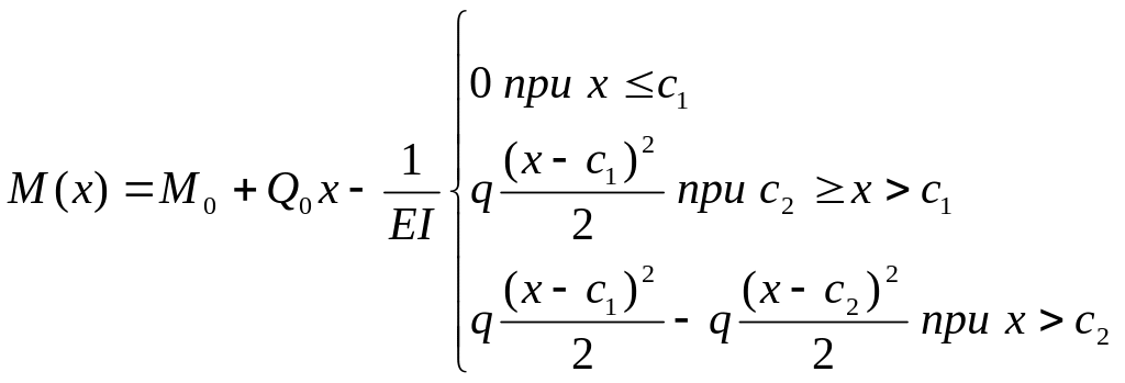 Выражения для определения изгибающего момента и перерезывающей силы соответственно: