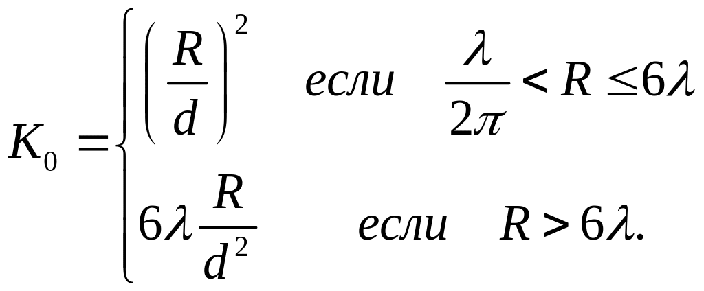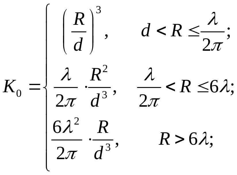 3 Если расположение измерительной антенны удовлетворяет словию d > 6λ, то для заданных значений R и λ коэффициент затухания рассчитывается по формуле: