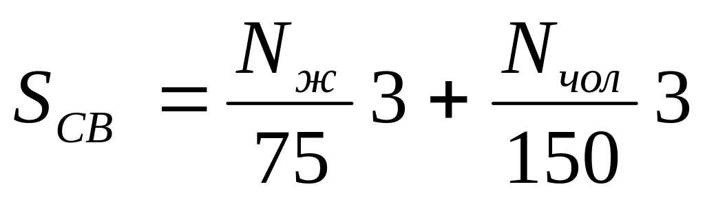 Загальну площу чоловічого і жіночого санітарних вузлів можна визначити із співвідношення: