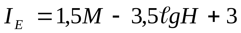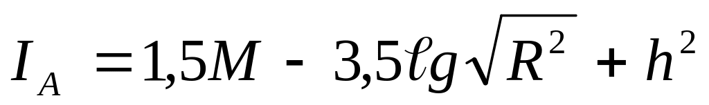 Інтенсивність землетрусу на об’єкті А, розташованого на відстані R від епіцентру, знаходиться за формулою: