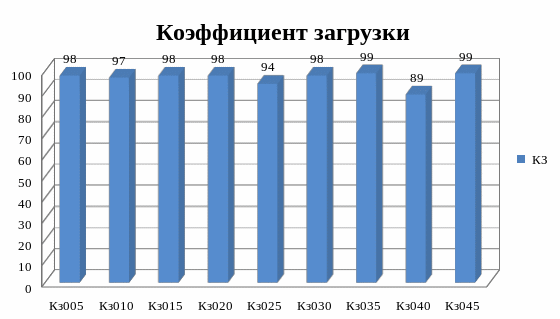 Степень использования оборудования или рабочих мест по времени определяется коэффициентом загрузки. Коэффициент загрузки для данной операции равен отношению расчетного числа станков к принятому числу станков.