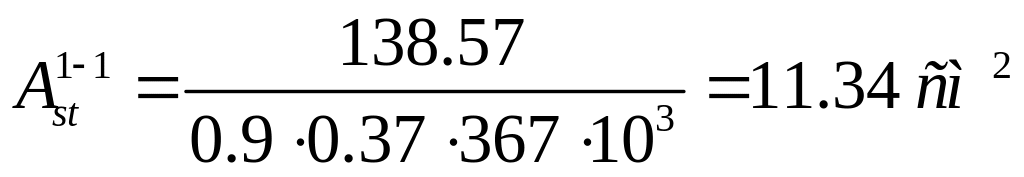 Площадь сечения арматуры, параллельной стороне l в сечении 1-1: