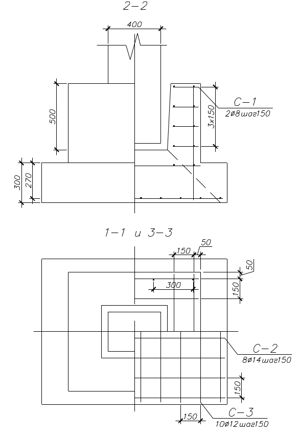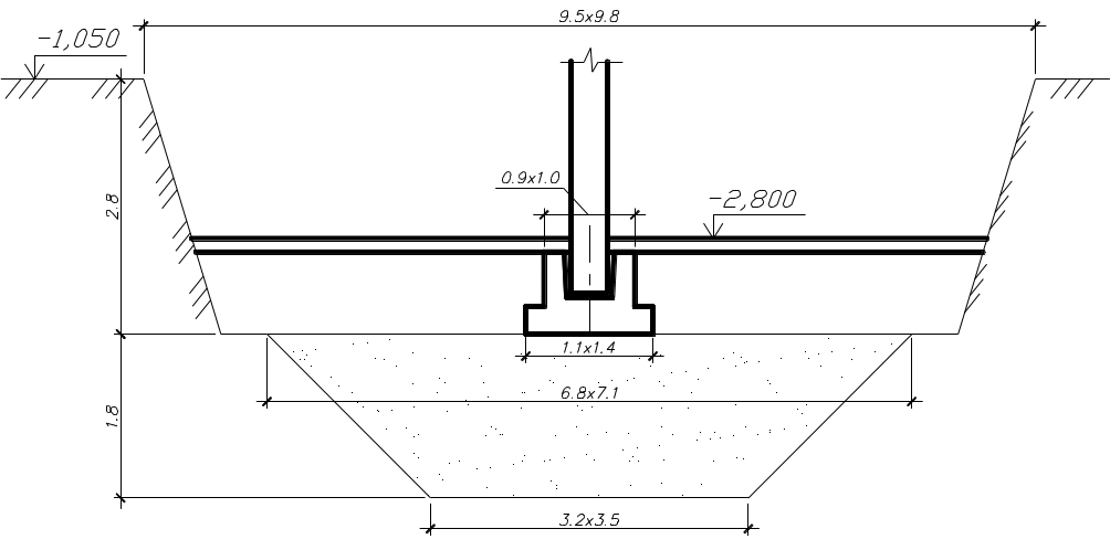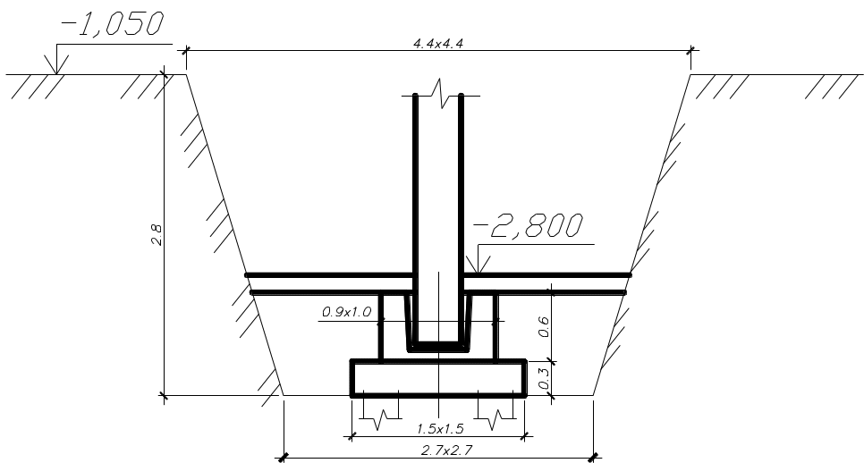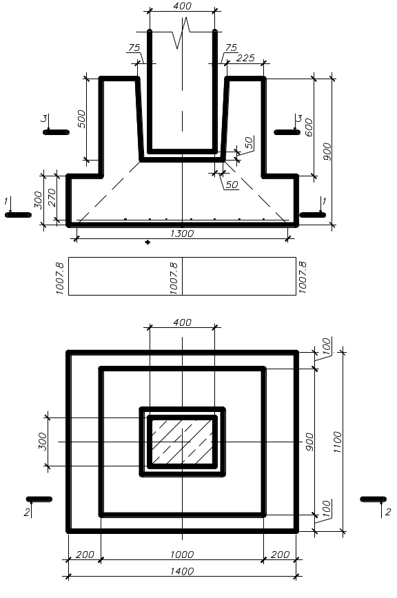 Расчёт фундаментов по прочности производится на расчётные усилия, взятые с осреднённым коэффициентом надёжности .
