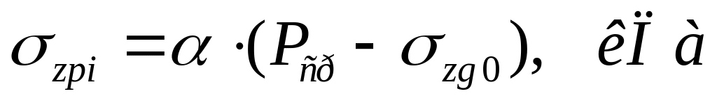Величина дополнительного вертикального напряжения для любого сечения ниже подошвы фундамента вычисляется по формуле: