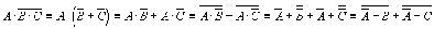 Пример 1. Упростить формулу (А+В)· (А+С) Решение. а) Раскроем скобки ( A + B ) · ( A + C ) · · C + B · A + B · C б) По закону идемпотентности, · · C + B · A + B · C · C + B · A + B · C в) В высказываниях А и А· C вынесем за скобки А и используя свойство А+1 1, получим А+А· С · · C · С · · С · · С г) Аналогично пункту в) вынесем за скобки высказывание А. · · С · С · С Таким образом, мы доказали закон дистрибутивности.