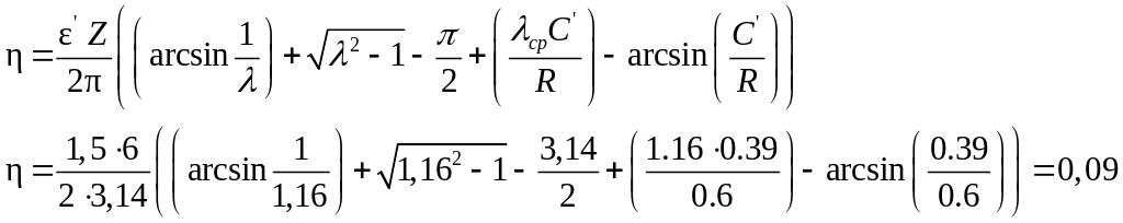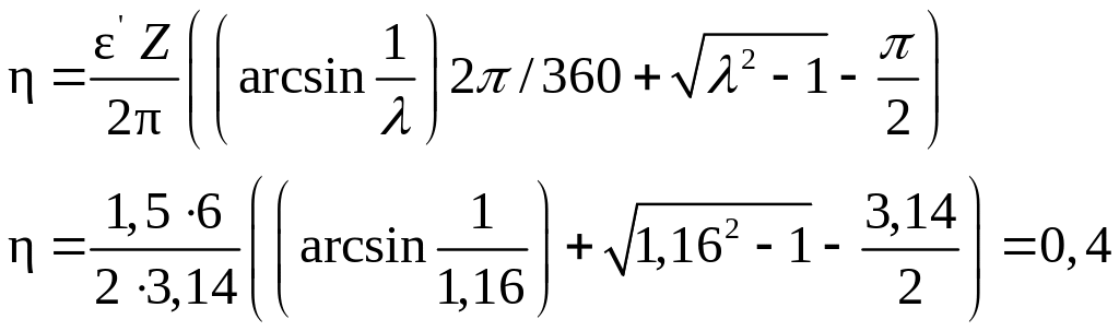 Определяем значения показателя кинематического режима в зависимости от предельных значений длин срезаемой части по формуле: