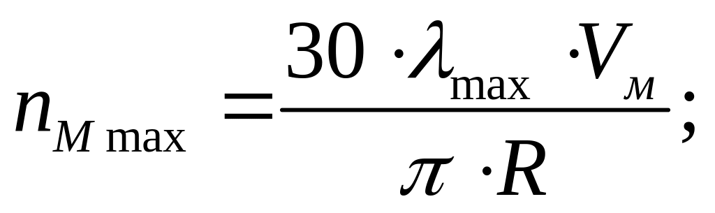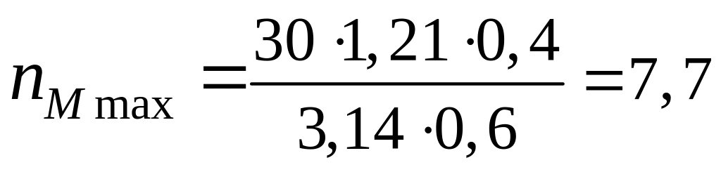 Проверяем максимально допустимое значение показателя кинематического режима из условия не вымолота зерна из колоса планкой мотовила в момент взаимодействия её с колосом по формуле: