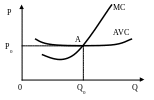 Там, де граничні витрати (МС) дорівнюють середнім змінним витратам (АVС), визначається точка припинення операцій (точка А), при будь-якій ціні, що нижча за Р0, фірма припиняє виробництво.